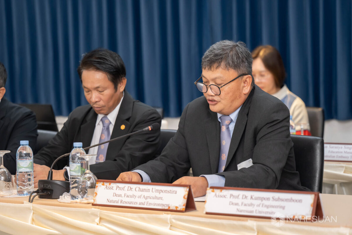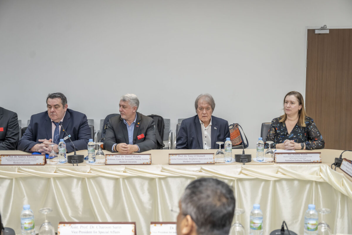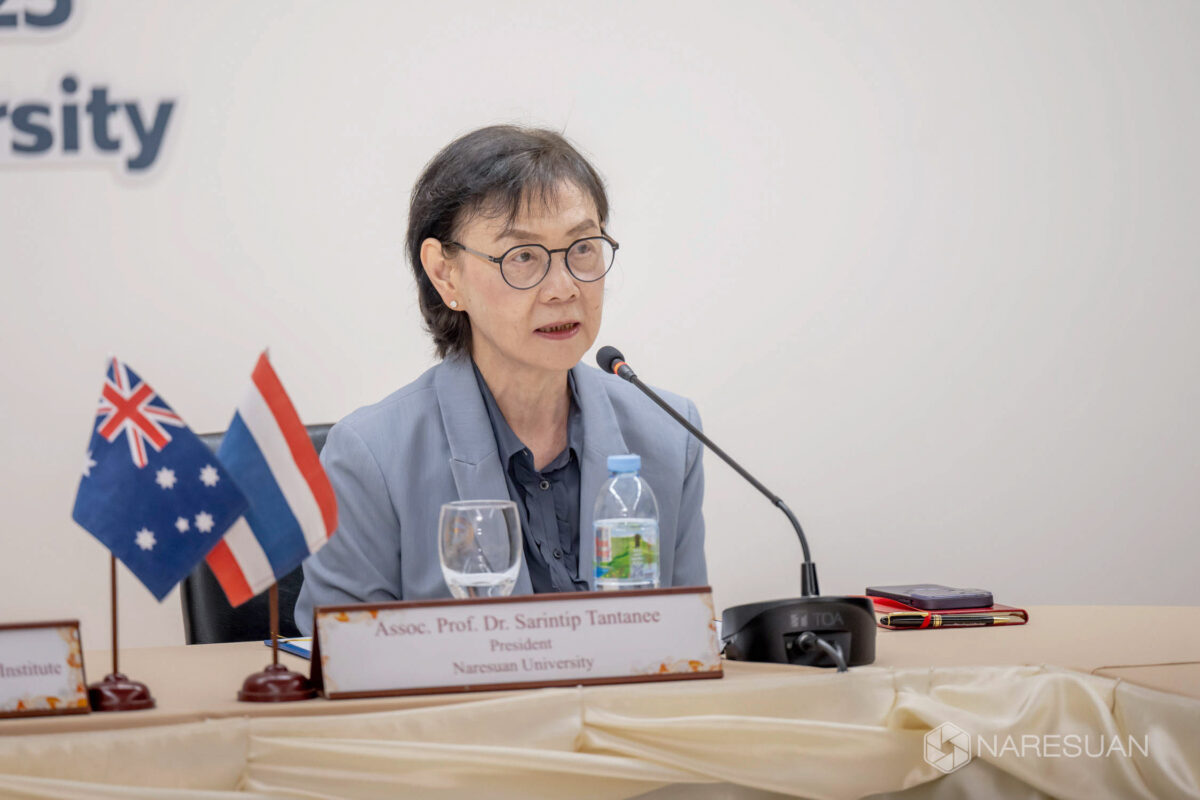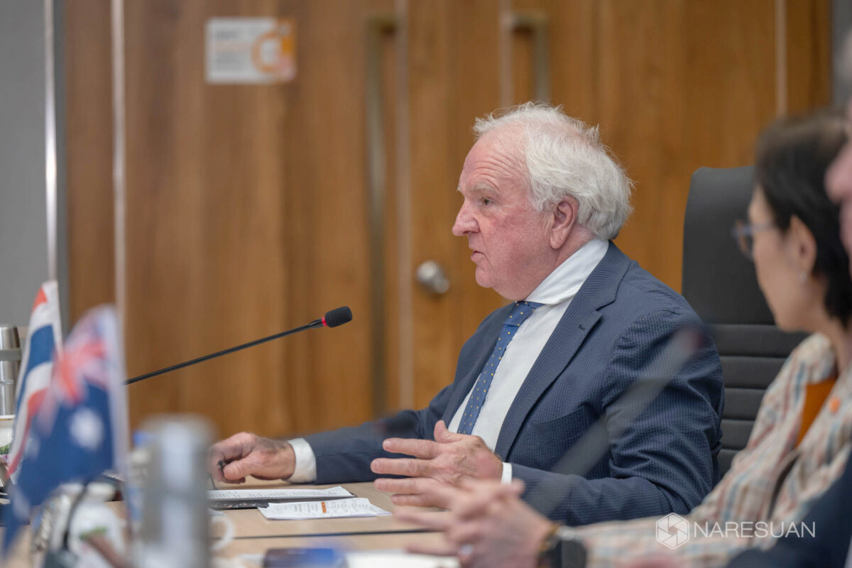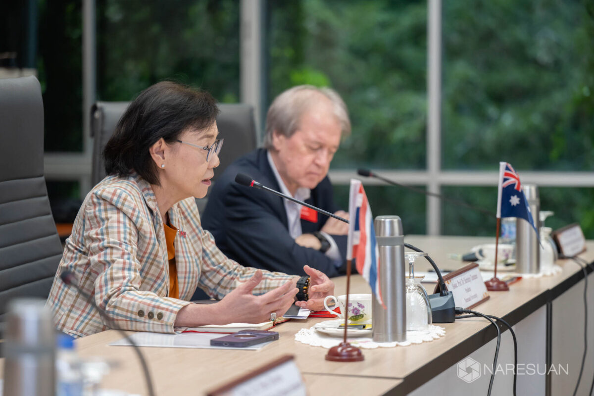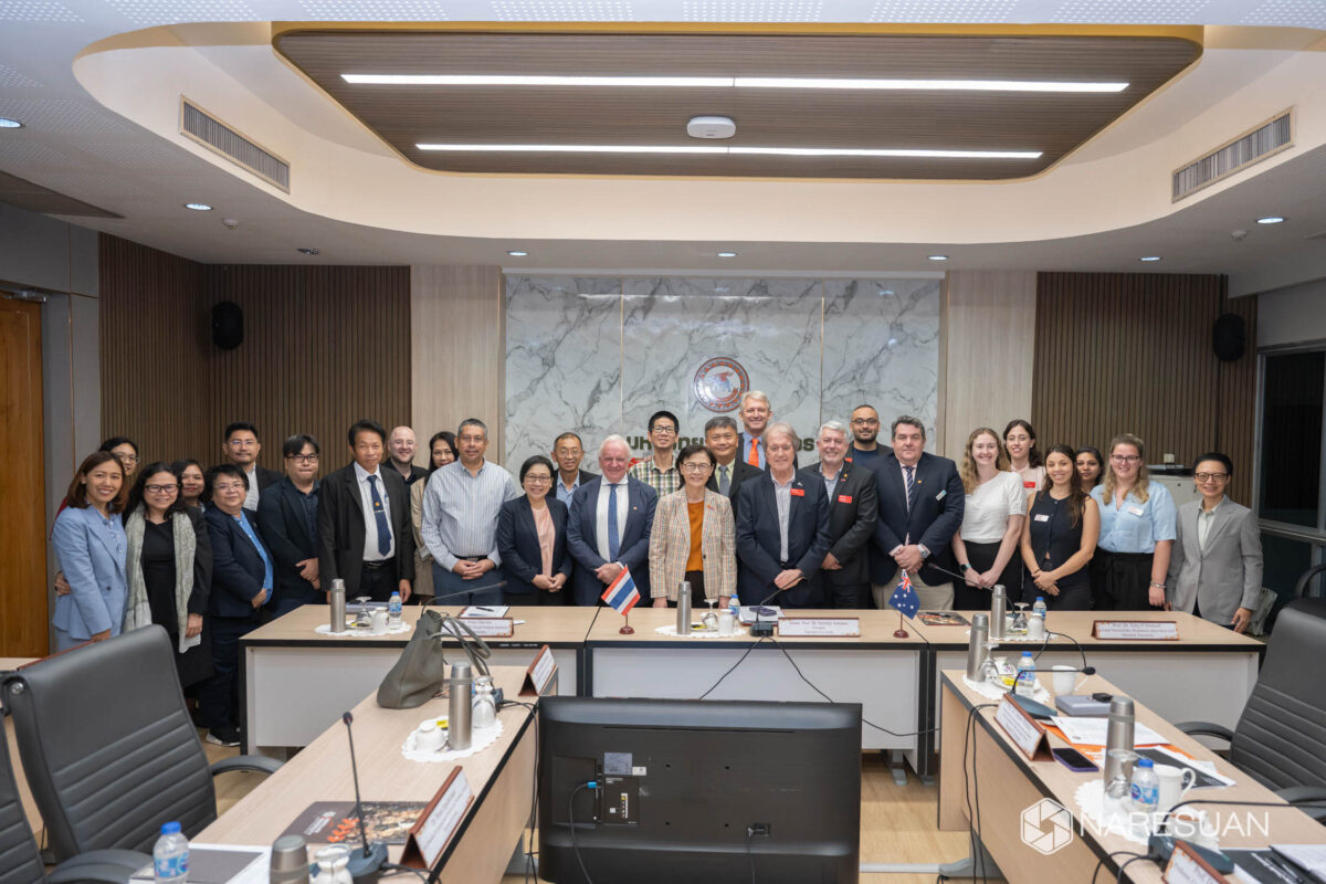 Presided over by Assoc. Prof. Dr. Sarintip Tantanee, President of Naresuan University (NU), a group of senior executives led by Prof. Dr. Peter Davies, Pro Vice Chancellor of Murdoch University (MU) and researchers from Bioplastics Innovation Hub from the same institution met with NU team members to discuss likely future of cooperation between the two universities on 8 October 2025. The focus of discussion was placed upon research collaboration in biopolymers, bioplastics and biological products to be contributed by the establishment of the Joint Laboratory of Waste and the Circular Economy (WACE), for which the details were jointly presented by NU and MU at Queen Sirikit National Convention Center on 1 October 2025. It is expected that the lab would encourage joint research activities, intellectual properties and patents benefiting not only NU and MU but the industry and spinoff companies who are looking for products and know-hows constituting waste and pollution free for the next generation. It is also noted that both the partners find out mutually agreed topics, research and products to push for joint publications while maintaining the mindset of reducing microplastic waste and other related harmful agents to save the environment. Having a Science Park located at Naresuan University, it is essential that they work closely with the private sector and nearby municipalities to come up with solutions for agricultural waste reduction where as WACE will play one of the key roles to serve as a portal for experienced researchers from Thailand and Australia, where funding is expectedly drawn from international funding agencies given increased visibility achieved by both NU and MU.