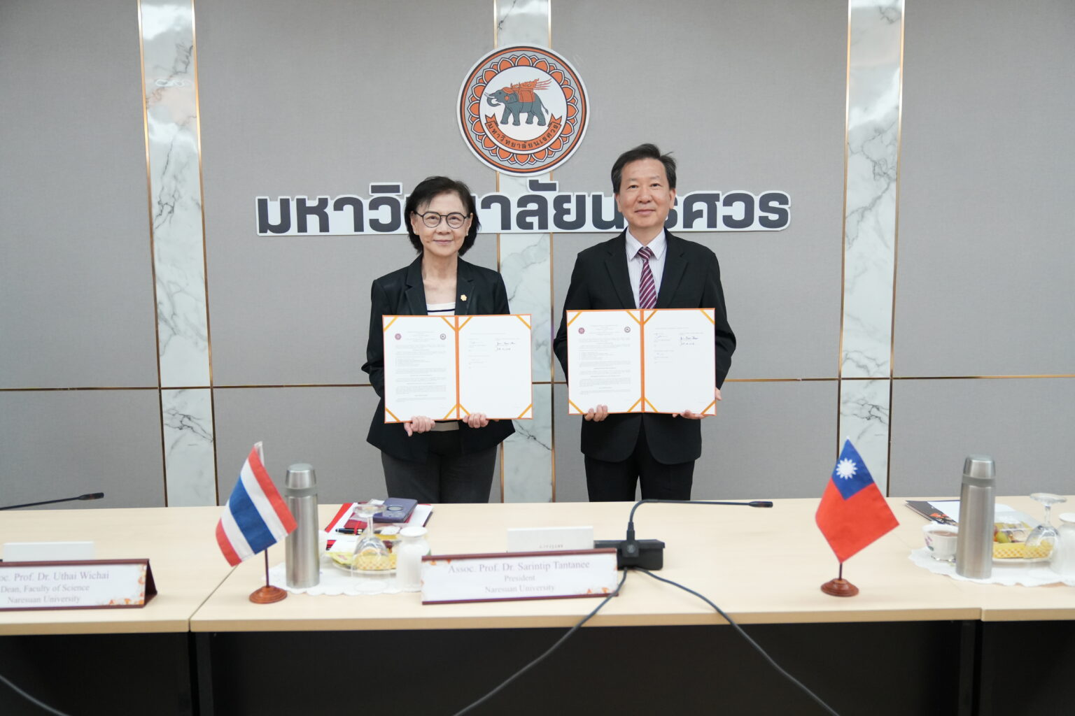 Brought by Assoc. Prof. Dr. Uthai Wichai, Dean of Science, Prof. Dr. Jein-Shan Chen, Dean of College of Science representing National Taiwan Normal University (NTNU), Taiwan attended a signing ceremony of the Memorandum of Understanding presided over by Assoc. Prof. Dr. Sarintip Tantanee, President of Naresuan University (NU). This international tie is initiated by NU Faculty of Science to collaborate with College of Science, NTNU in terms of academic/research activities such as staff and student exchange and joint research publications between the two universities. After the ceremony concluded, Prof. Dr. Chen took this opportunity to visit Faculty of Medical Science to discuss possible cooperation with the faculty and later gave a special lecture on ’Smoothing Functions to Sparse Optimization: A Unified Framework’ for interested staff and researchers at Department of Mathematics, Faculty of Science.