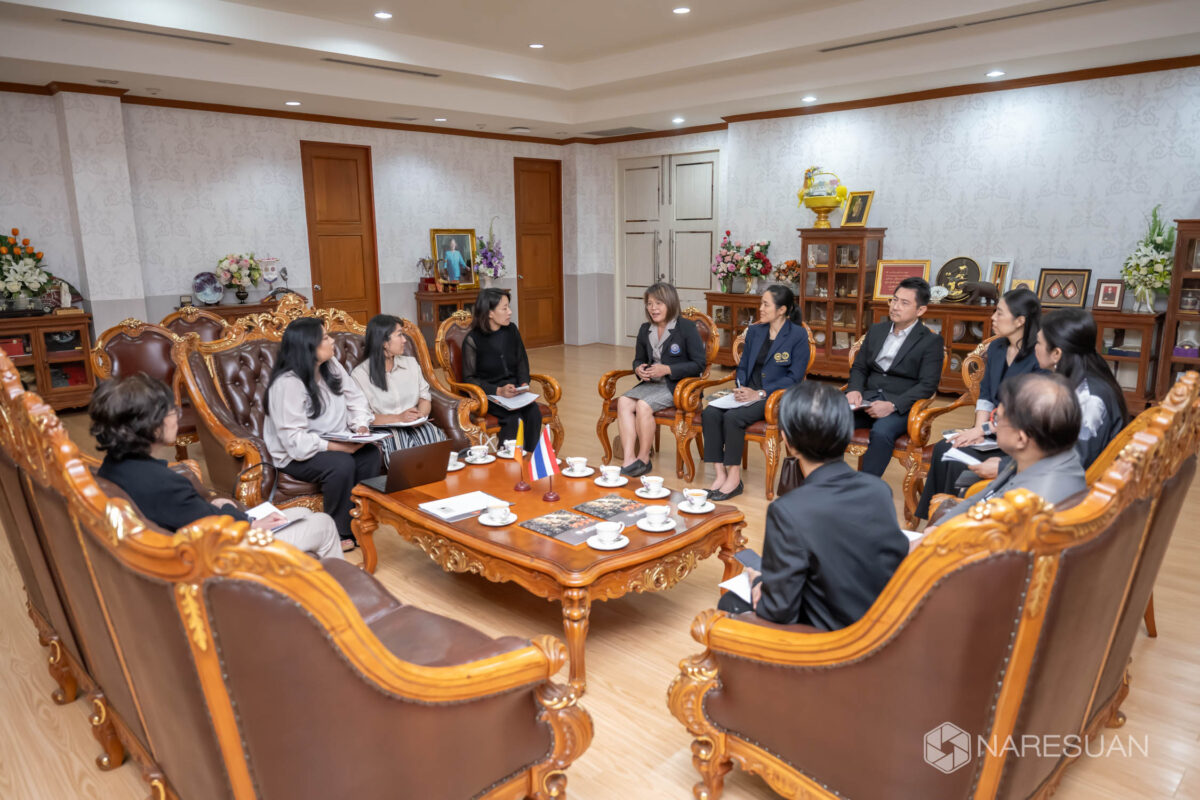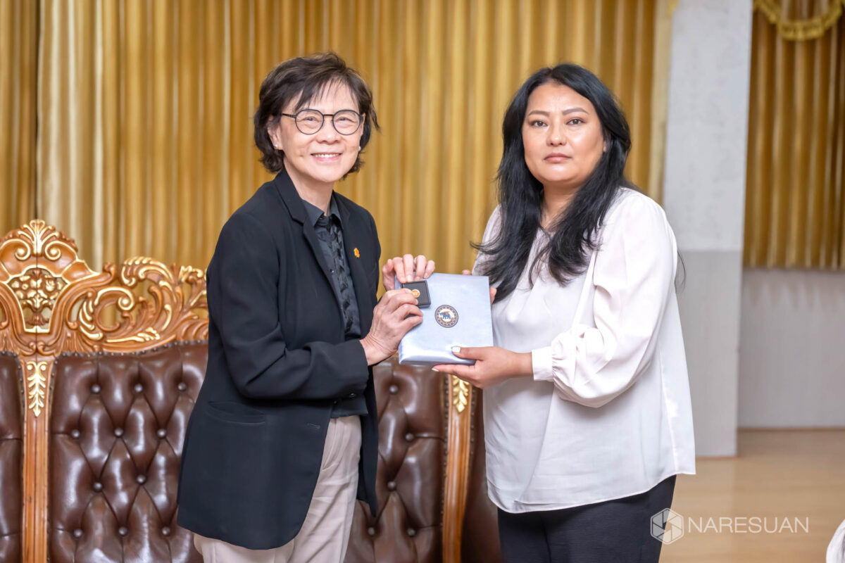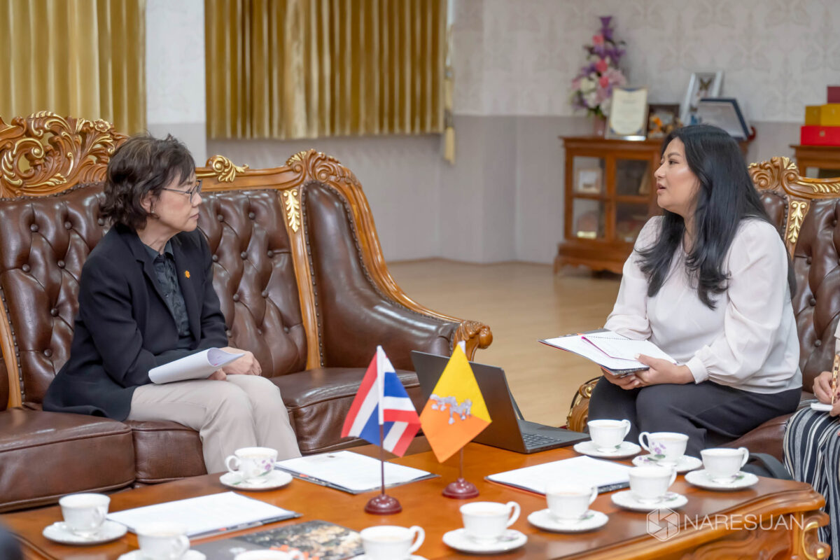 Assoc. Prof. Dr. Sarintip Tantanee, President of Naresuan University (NU), extended her warm welcome to delegates from Youth Welfare and Education Office, His Majesty’s Secretariat, the Kingdom of Bhutan led by Ms. Choing Dolma, Head, Youth Welfare and Education Office. The group proposed to meet with NU senior executives and representatives from faculties/schools where scholarship Bhutanese students are studying to explore an effective coordination to closely monitor students’ progress and strengthen mutual cooperation, which has been established for over a decade. To date, a total number of 147 Bhutanese students have received scholarships under such cooperation through Youth Welfare and Education Office, and the office also took this opportunity to meet with currently studying Bhutanese students to inquire their well-beings, learning environment and et cetera.