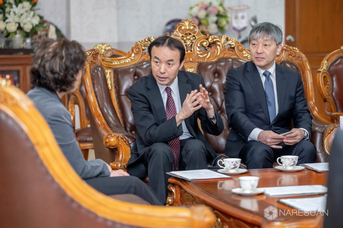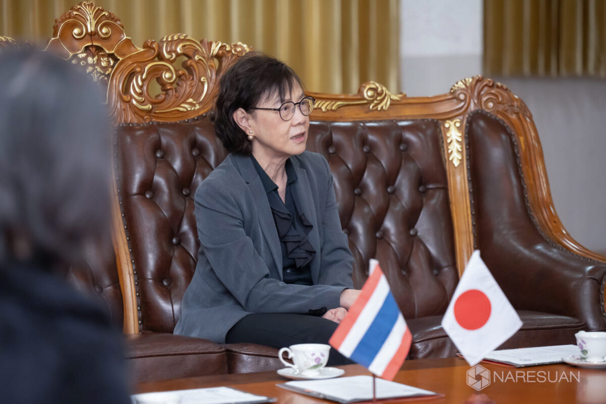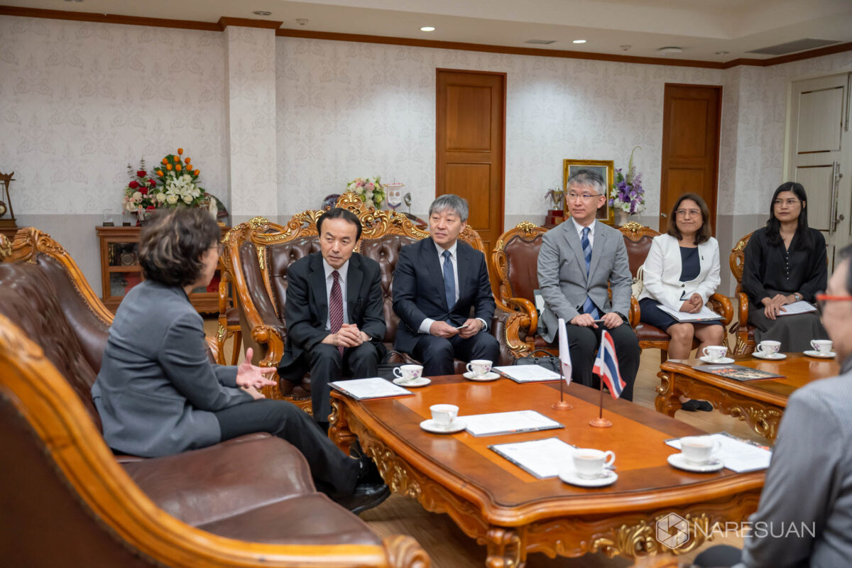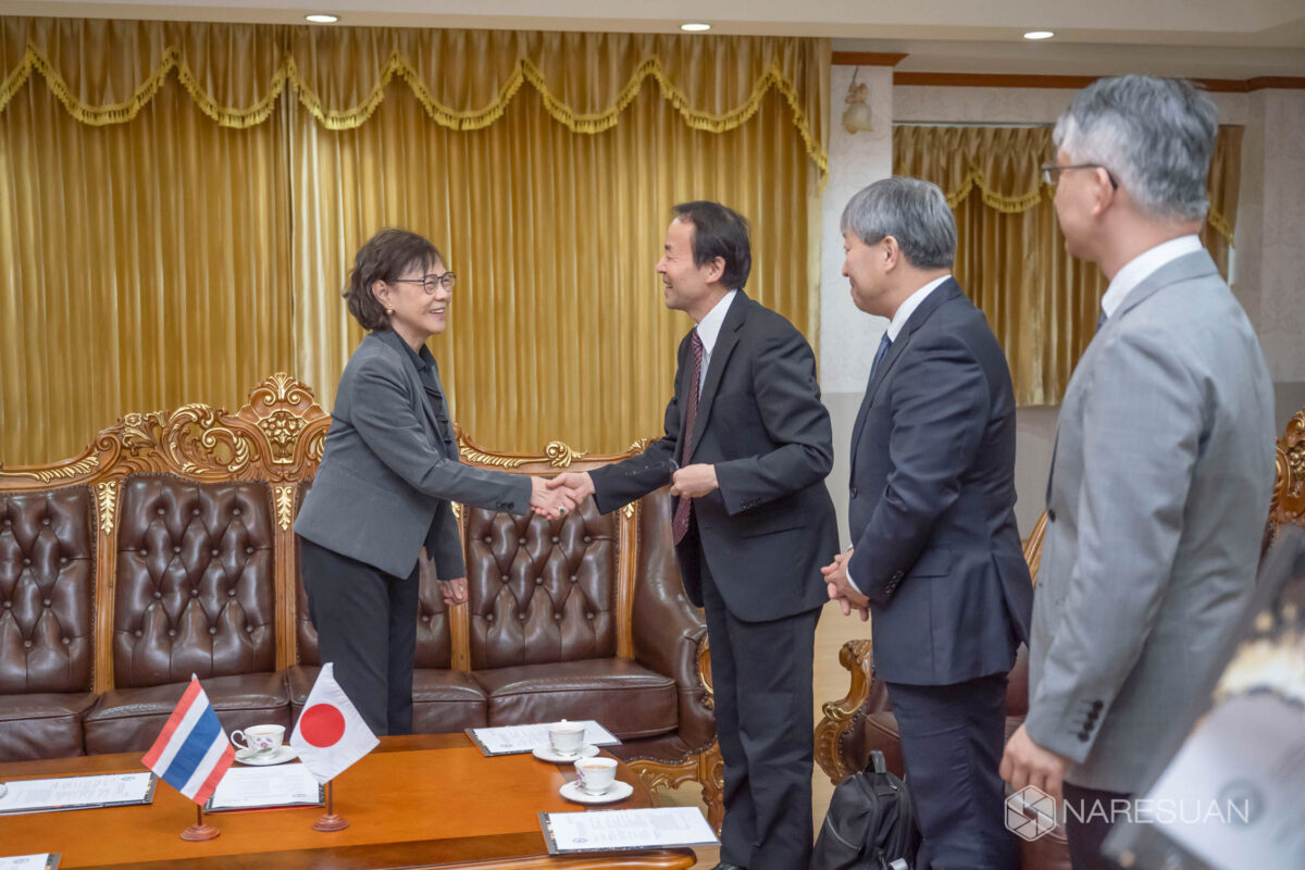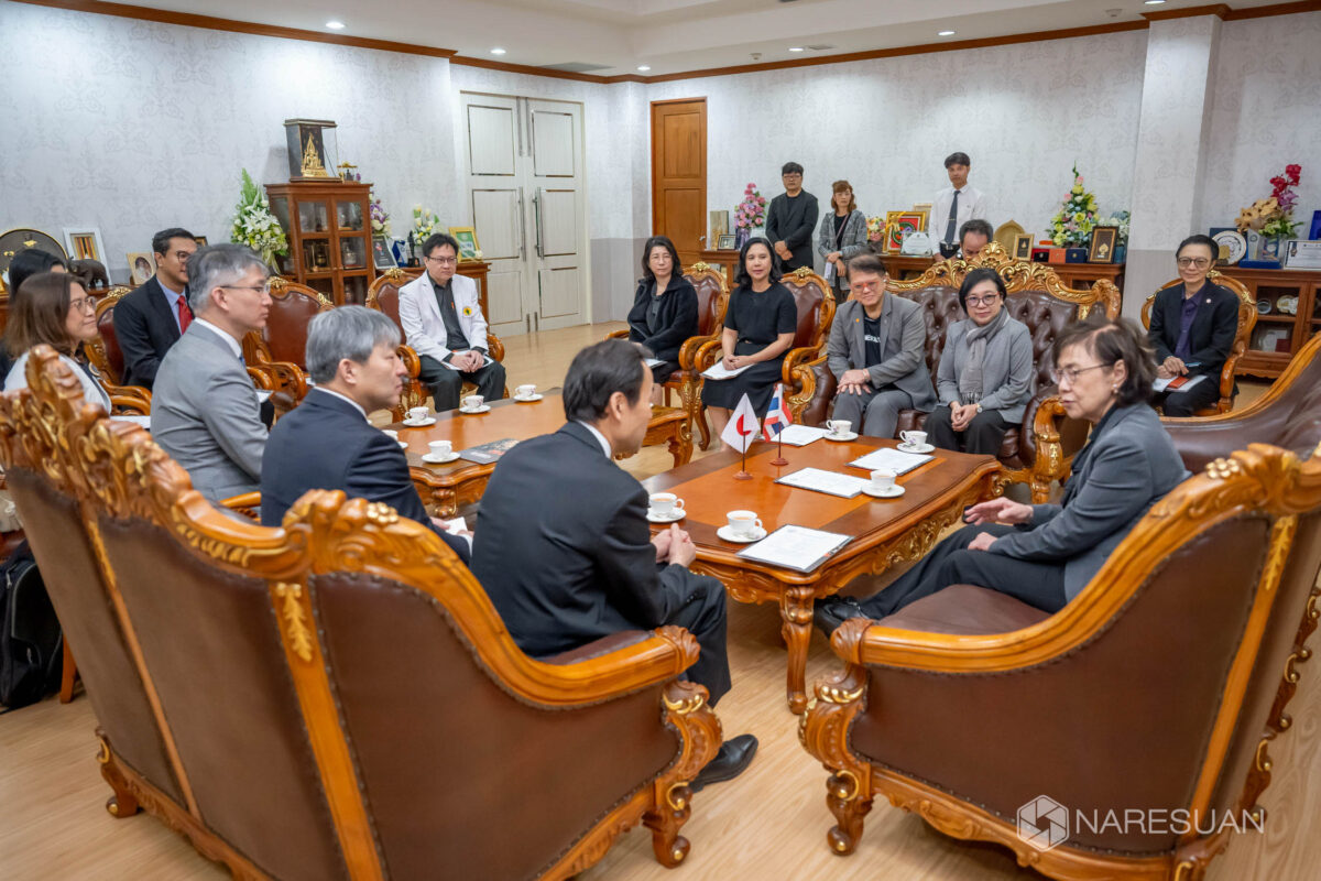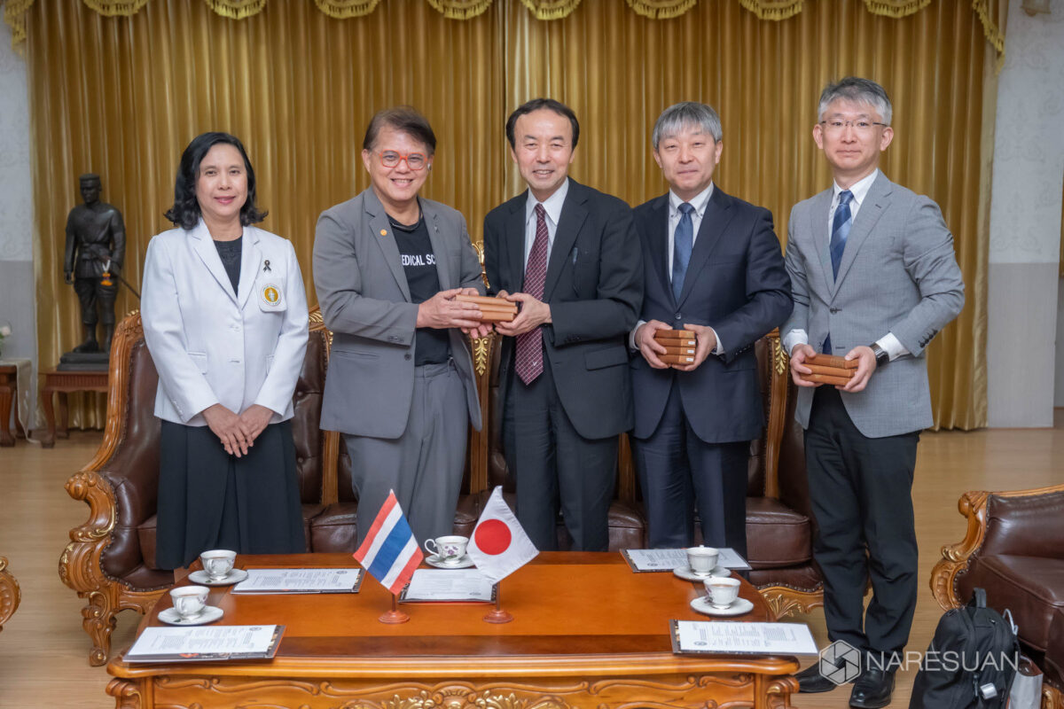 The delegates from Kanazawa University (KU), Japan led by Prof. Dr. Osamu Hori, Dean of College of Medical, Pharmaceutical, and Health Sciences were received by Assoc. Prof. Dr. Sarintip Tantanee, President of Naresuan University (NU) upon their visit to Faculty of Medical Science. The team wished to explore an opportunity for KU medical students to spend a one-month clinical training program at Naresuan University Hospital, Faculty of Medicine. The short but very productive activity for KU students could usefully include learning in global health, hygiene and infectious diseases. NU Faculty of Medical Science also planed to send a Ph.D. student to Graduate School of Medical Sciences, Kanazawa University for a collaborative research project and study under double-degree doctoral program between the two universities.
