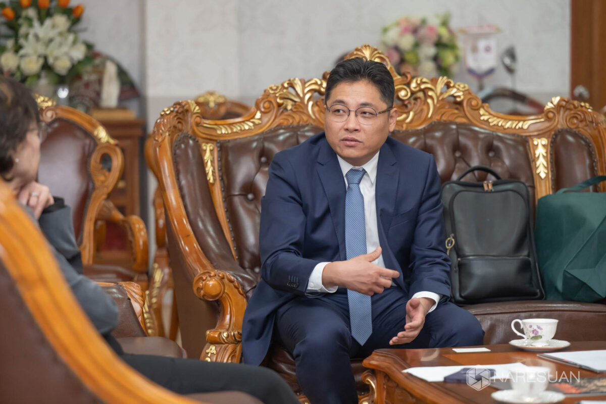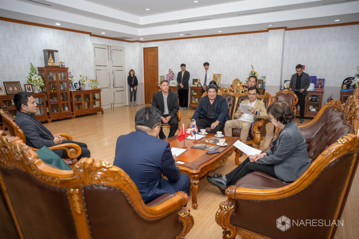 Assoc. Prof. Dr. Sarintip Tantanee, President of Naresuan University (NU), extended her warm welcome to Prof. Dr. Wu Jun, a visiting professor from School of Civil Engineering, Shanghai Normal University, China. Brought by Asst. Prof. Dr. Kumpon Subsomboon, Dean of NU Faculty of Engineering, Prof. Jun discussed with NU executive team towards a one-year research project on ‘Future Proofing Health and Environment Against Climate Change,’ which is funded by the Thai Ministry of Higher Education, Science, Research and Innovation and coordinated by Asst. Prof. Dr. Korakod Nusit, Associate Dean for Administration, Faculty of Engineering. The said project has commenced from 3 February 2025 to 2 February 2026.