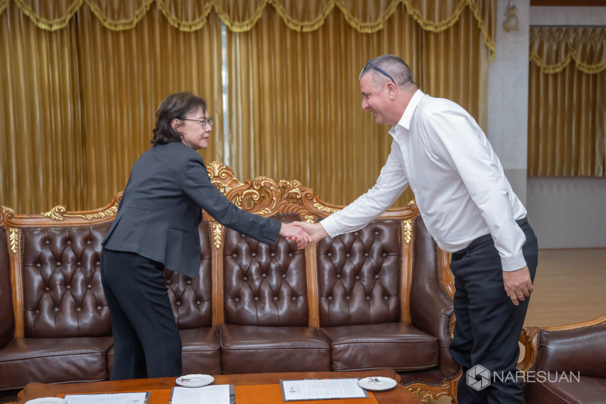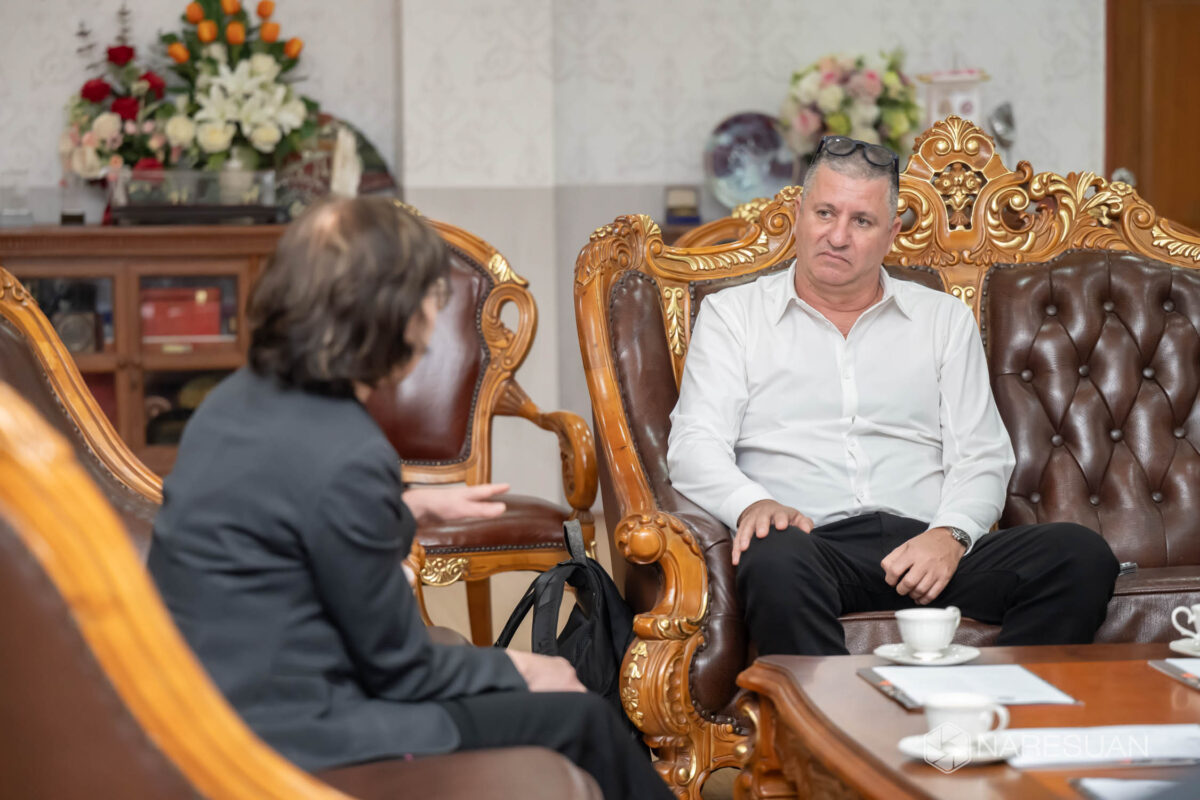 Assoc. Prof. Dr. Sarintip Tantanee, President of Naresuan University (NU), extended her warm welcome to Mr. David Zehavi, Program’s CEO from MASHAV (Israel’s Agency for International Development Cooperation), Israel who came to NU upon an invitation from Faculty of Agriculture, Natural Resources and Environment. Mr. Zehavi’s visit stemmed from the project ‘Agricultural Internship Program’, which was proposed by NU Faculty of Agriculture, Natural Resources and Environment and initiated by Dean Chanin Umponstira in collaboration with Kinneret Academic College (KAC), Israel. The objective of the project is to send a group of agriculture students to spend an 11-month internship period at KAC. Mr. Zehavi also spent the time NU to give introduction and nature of the program to staff and students of Faculty of Agriculture, Natural Resources and Environment and will take this opportunity to visit poultry farm, scientific laboratory and FoodInnopolis, a facility providing services and consultations for entrepreneurs in food manufacturing and business.